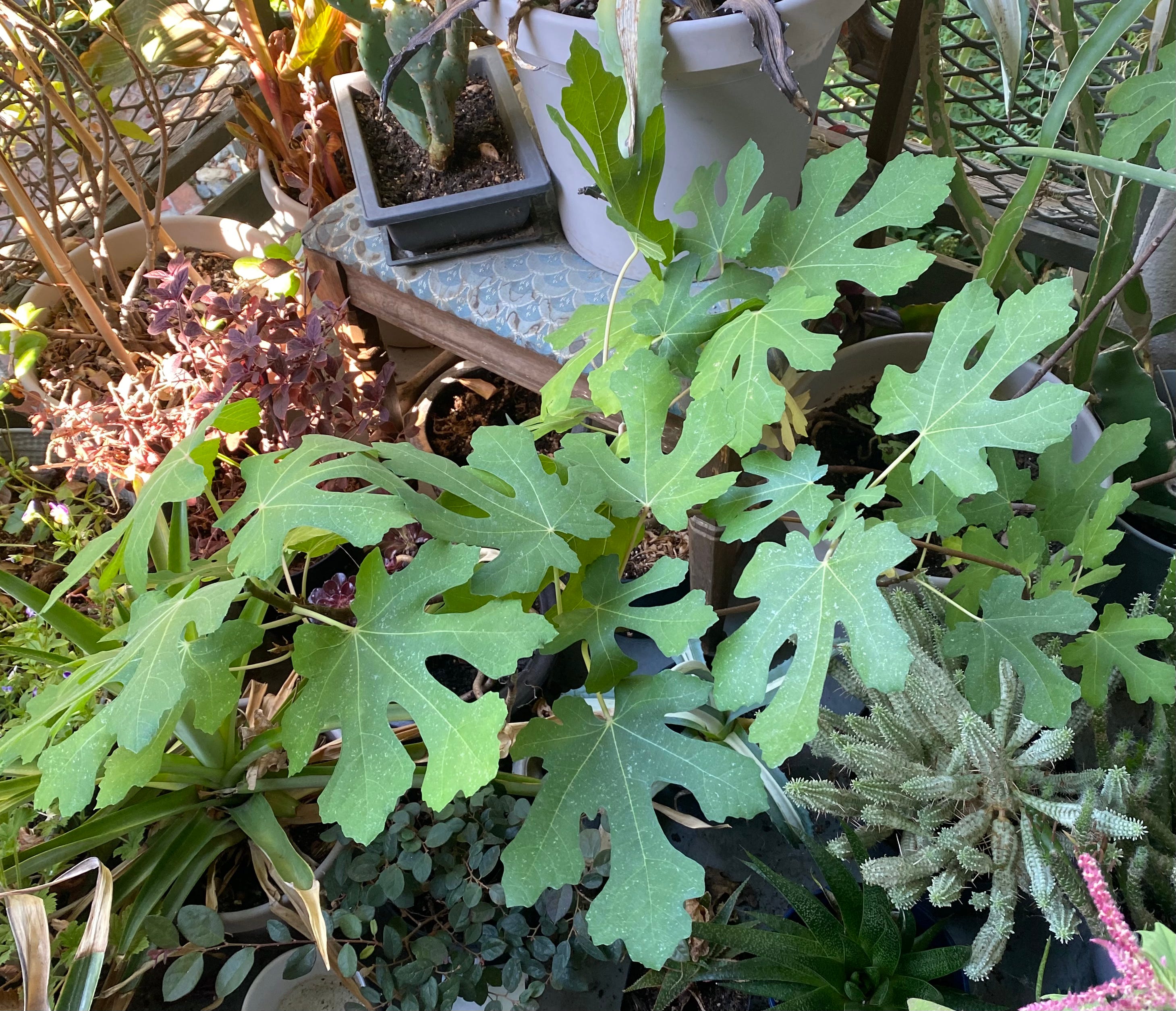 Figglet is a young black mission fig and still hasn’t put out any fruit, but believe me, I am anxiously awaiting that day. Ficus are pollinated by very tiny wasps known as fig wasps. The entire cycle is bonkers, but we won’t get into right now for two reasons, one, I have that discussion planned for another post, and two, Ficus carica used in fruit production are parthenocarpic, meaning they can produce viable fruit without pollination. So no fig wasps in your, well those figs anyway.