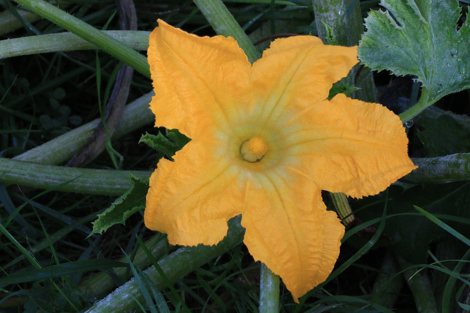 In a male flower, as in the male cucurbit flower below, you generally get one large stamen covered with pollen.