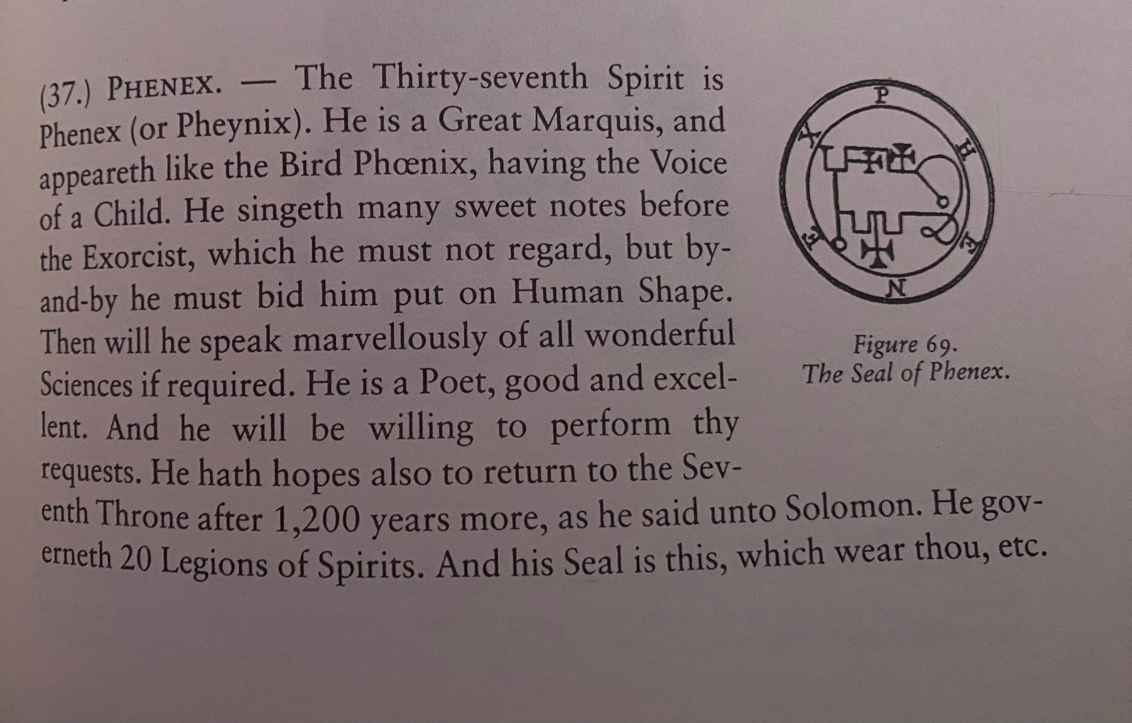 And last but not least, my favorite of all the demons, Phenex, the demon of poetry because of course I need a demon of poetry.