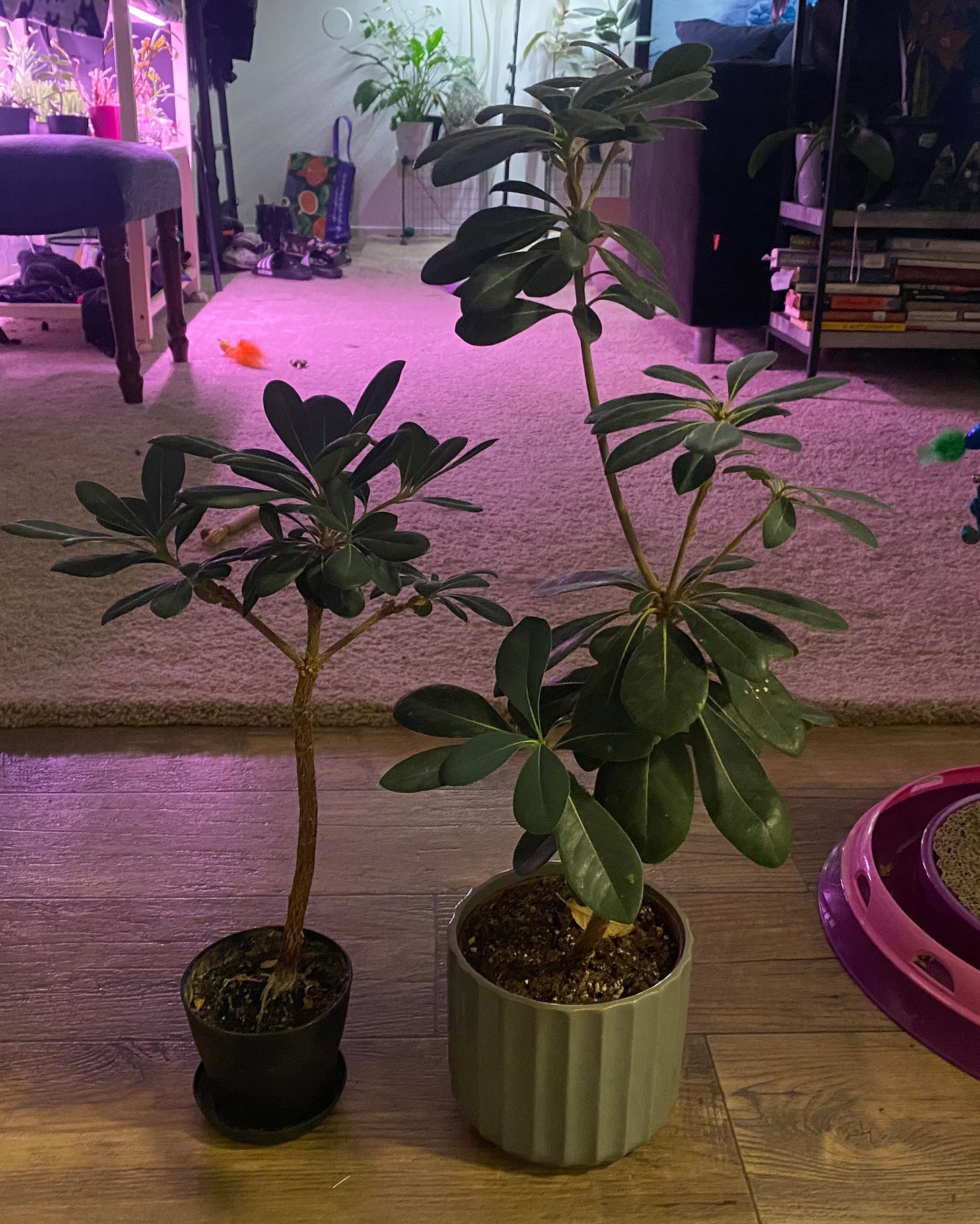 These plants are often propagated from cuttings, but they’re also really easy to grow from seed. I have two that I grew from seeds from the tree behind my building. The seeds were really sticky when I found the open pod on the ground, but I just popped them in the dirt that way and put the pots under a grow light. They grow pretty quickly, look cool, and take a fair amount of neglect. Probably two of my favorite plants.